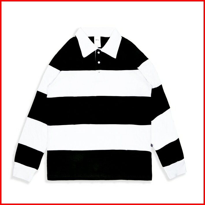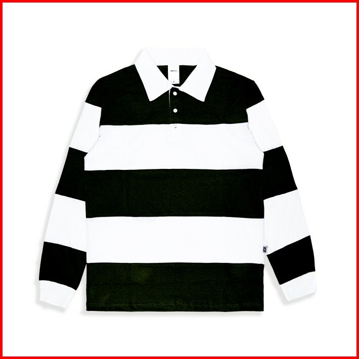 Rugby Shirt Long Sleeve Polo Shirt Polo Lengan Panjang Black Aplikasi