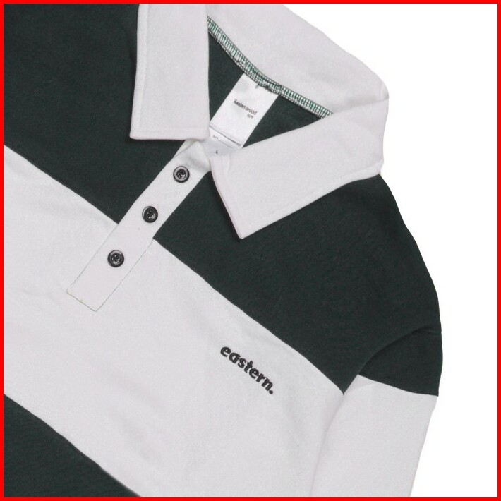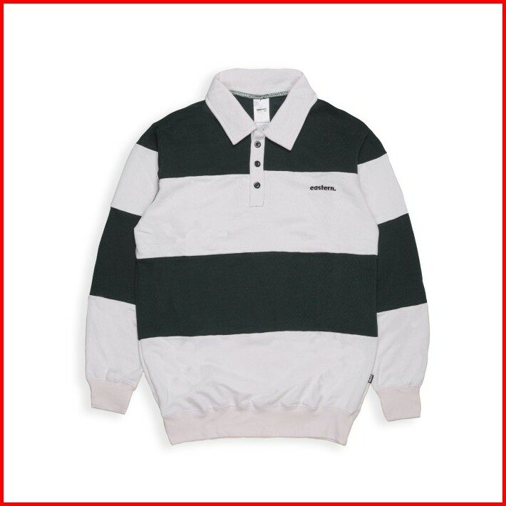 Rugby Shirt Crewneck Long Sleeve Polo Shirt Aplikasi Hijau