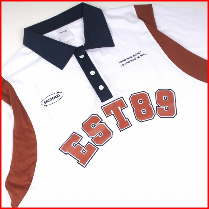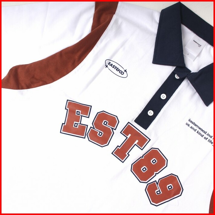 Rugby Lengan Pendek Oversize Vintage Short Polo Shirt Aplikasi White