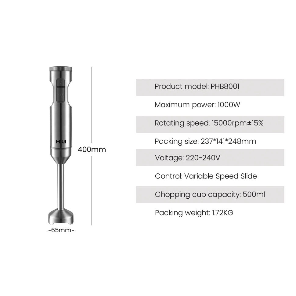 MIUI Powerful 4-in-1 Hand Immersion Blender Stainless Steel Stick Blender 700ml Mixing Beaker 500ml - cok544
