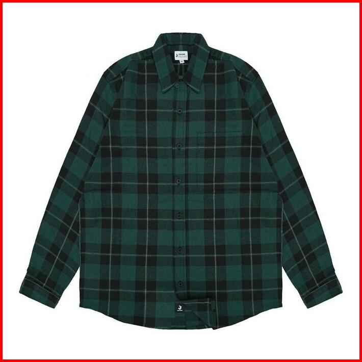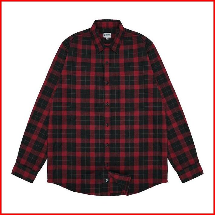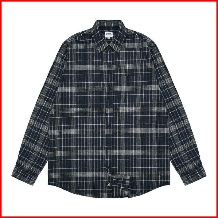 3second Kemeja Kotak-kotak Pria Flanel Plaid Lengan Panjang Regular Fit Preto Ol-c010225