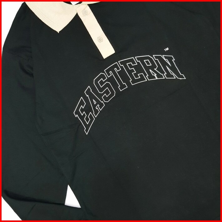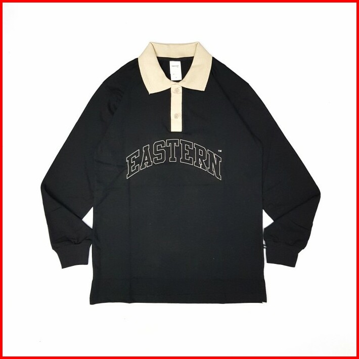 Rugby Shirt Long Sleeve Polo Shirt Polo Lengan Panjang Hitam Cream