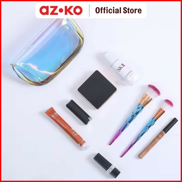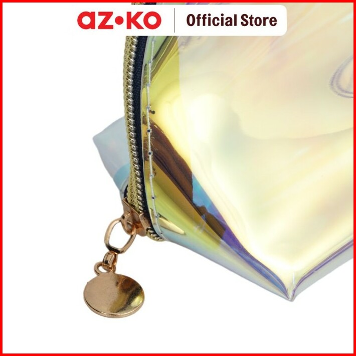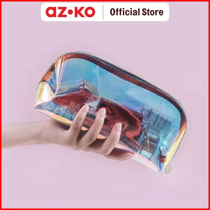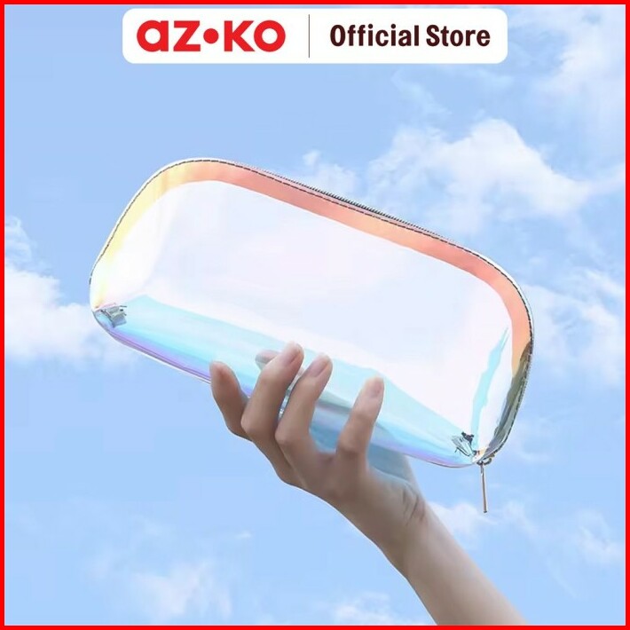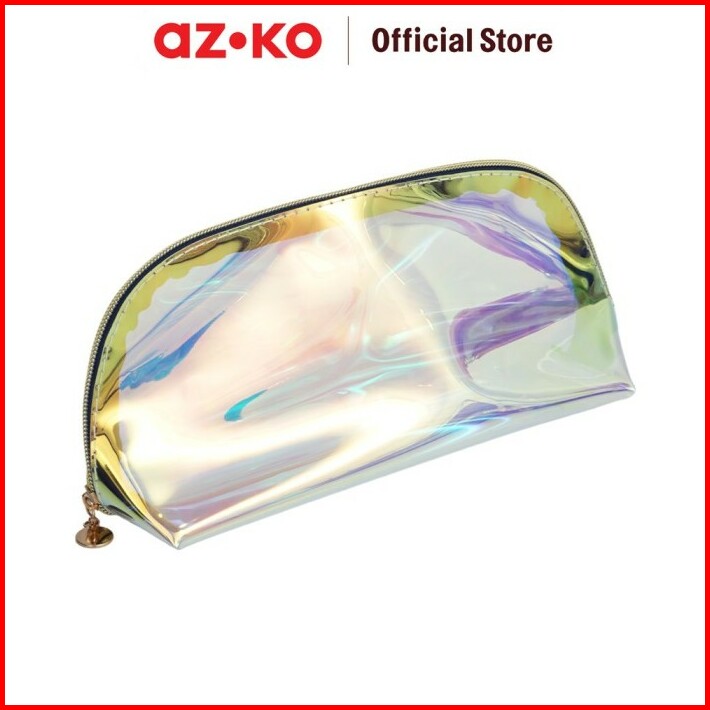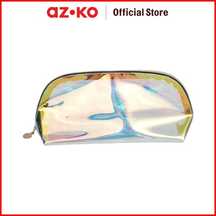 Azko Ataru Pouch Tpu Oval Hologram Kantong Organizer Serbaguna Tempat Pensil Pulpen Alat Make Up Pouch Kosmetik Lucu