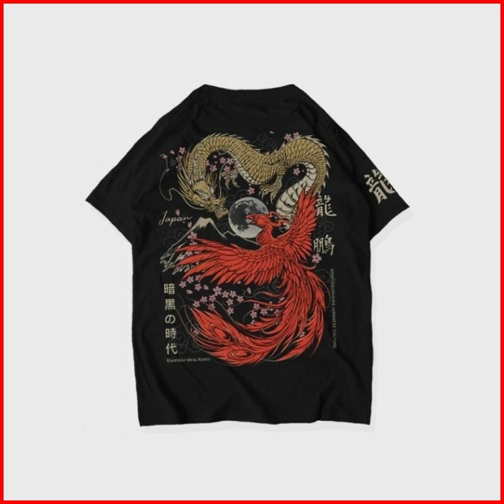 Kaos Pria Over Size Motif Jepang Hitam Memphis Origins Kiyomizu Black