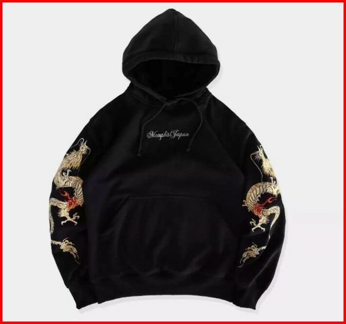 Jaket Pullover Hoodie Pria Hitam Motif Jepang Memphis Origins Tenryu Hoodie