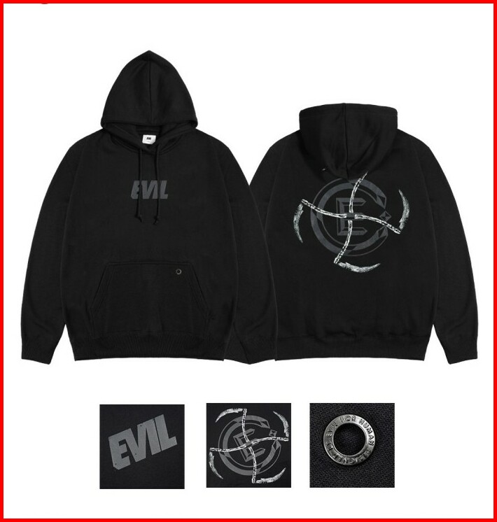Jaket Sweatshirt Pullover Hoodie Simple Hitam Evil Army Hamhawk A25 Black