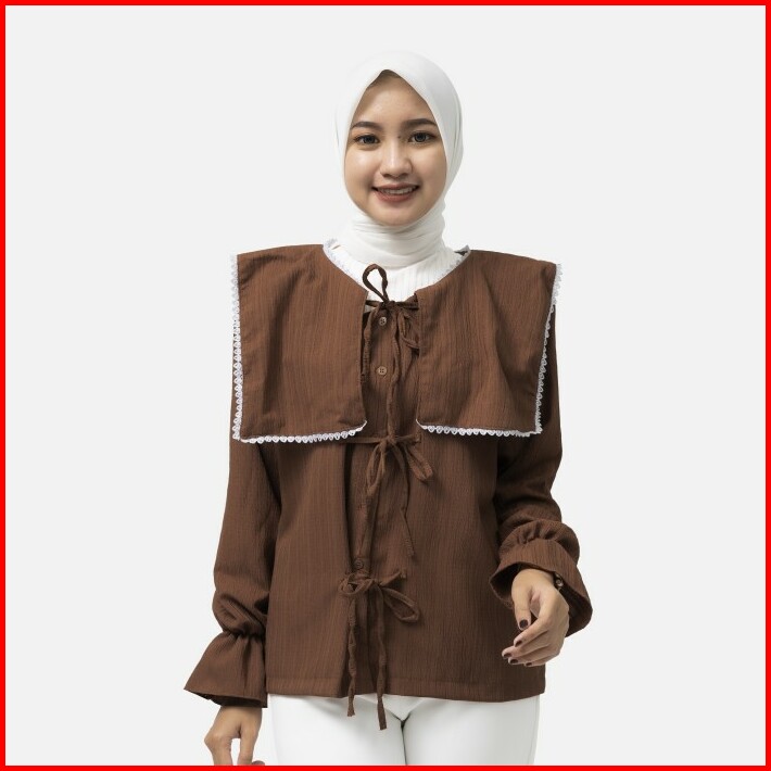 Kemeja Wanita Lengan Panjang Simple Polos Coklat Friday Killer Girl Felicity Brown