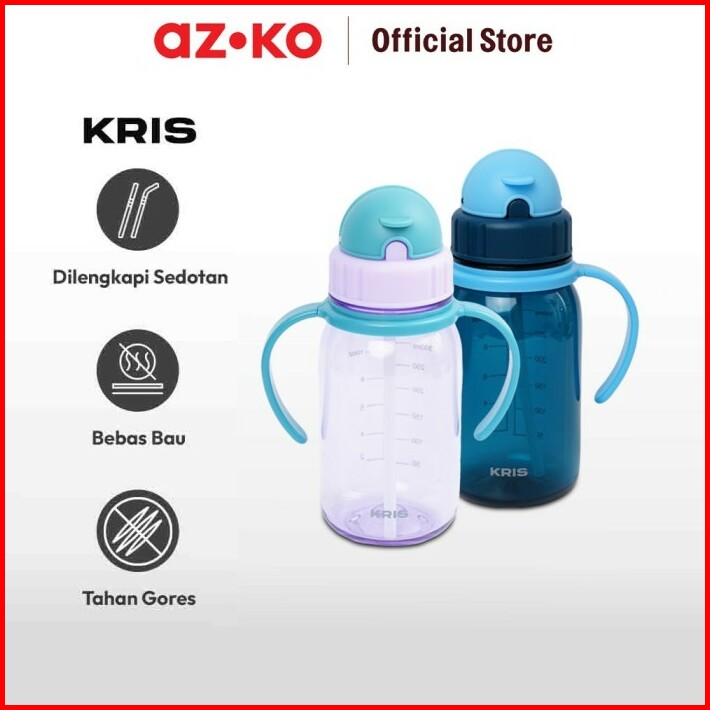 Azko Kris Botol Minum Anak Flipstraw Dengan Handle Water Drinking Bottle Tempat Minum Anak-anak Bpa Free Perlengkapan Mi