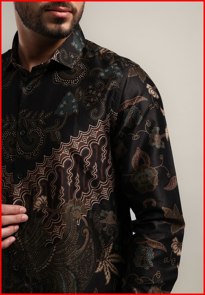 Moc Kemeja Batik Lengan Panjang Pria Chandan-black