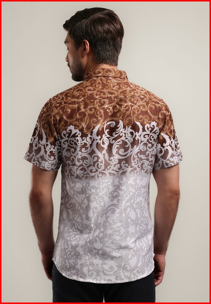 Moc Kemeja Batik Lengan Pendek Pria Tiagos-khaki