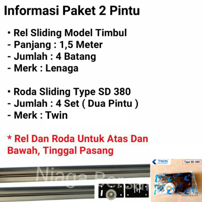 Rel Sliding Lemari 2 Pintu 1,5 Meter el Timbul Plus Roda Geser SD 380 Komplit