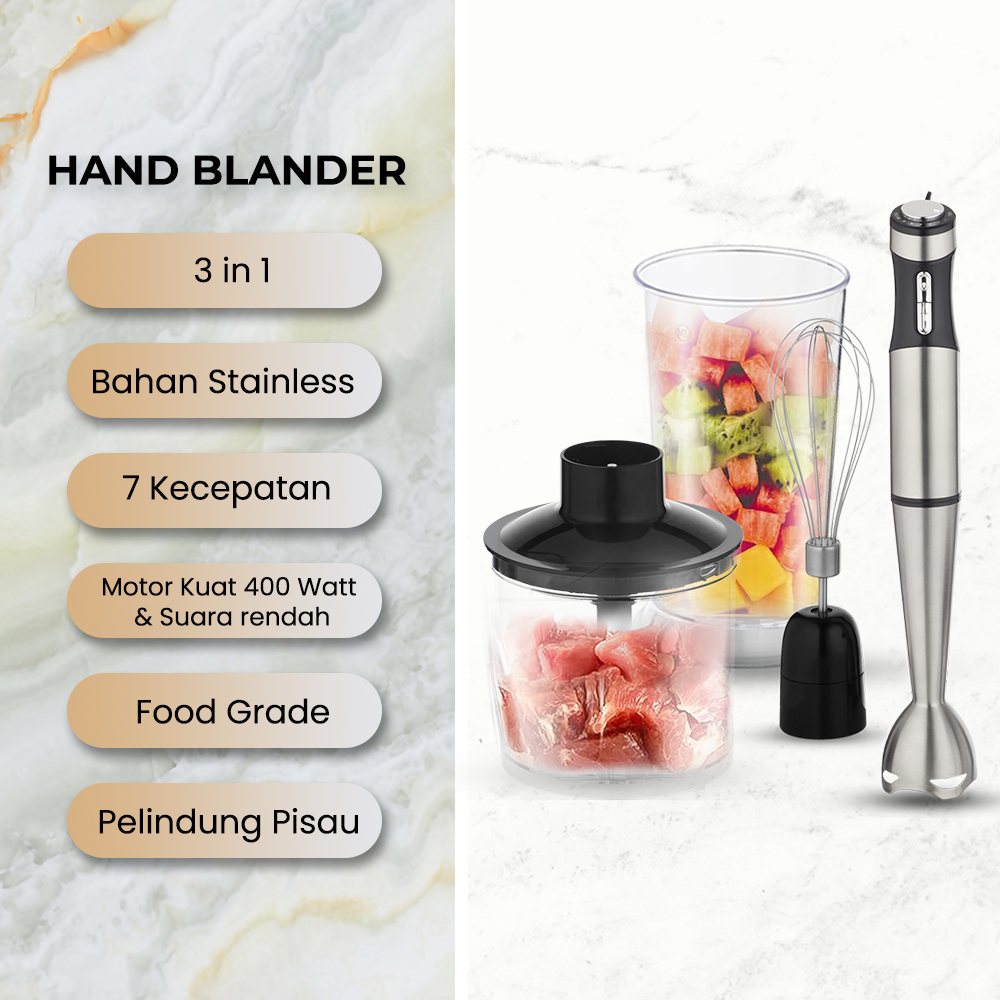DORAHOMI Hand Blender Tangan Chopper Mixer 3 in 1 Stainless Steel