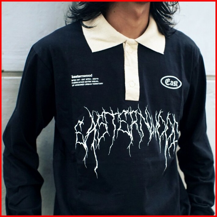 Rugby Shirt Long Sleeve Polo Shirt Polo Lengan Panjang Black