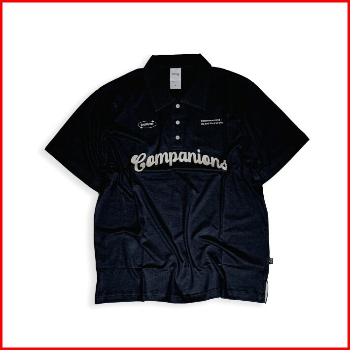 Rugby Lengan Pendek Oversize Vintage Short Polo Shirt Hitam