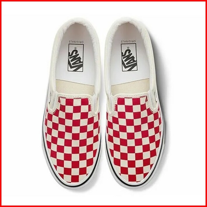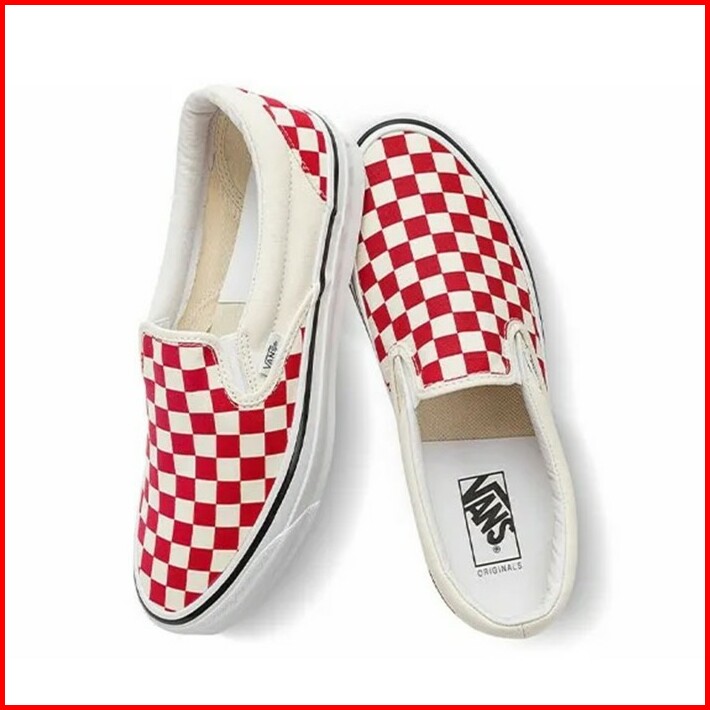 Sepatu Sneakers Slip On Pria Vans Of The Wall Slip On Lx Og Classic Checkerboard Racing Red