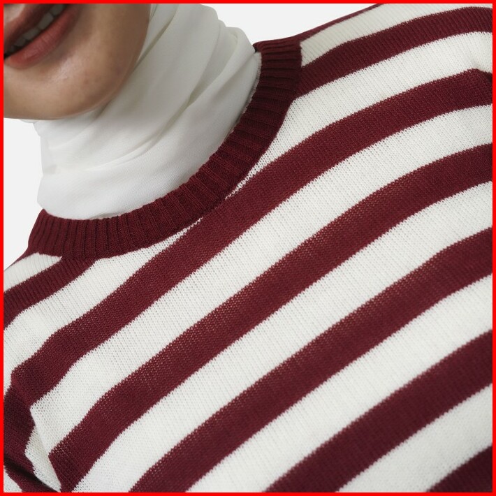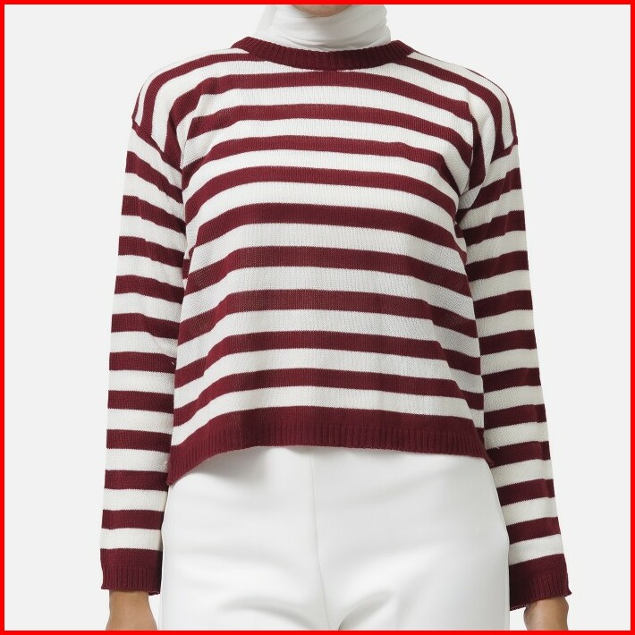 Sweater Knitwear Rajut Sweatshirt Wanita Garis Garis Friday Killer Girl Lulla Maroon