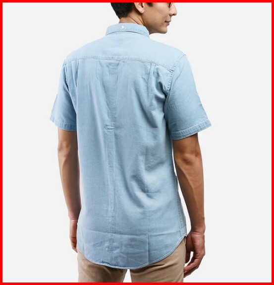 Kemeja Pria Lengan Pendek Polos Kasual Biru Warning Cloth Easton