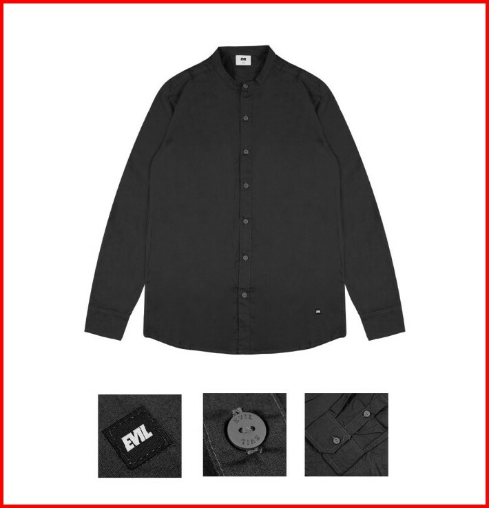 Kemeja Lengan Panjang Polos Pria Hitam Evil Army Gazete A25 Black