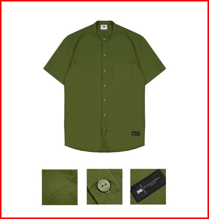 Kemeja Lengan Pendek Polos Pria Hijau Evil Army Civible A25 Olive