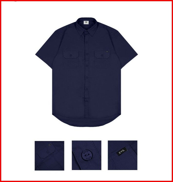 Kemeja Lengan Pendek Polos Pria Navy Evil Army Mesovar A25 Navy