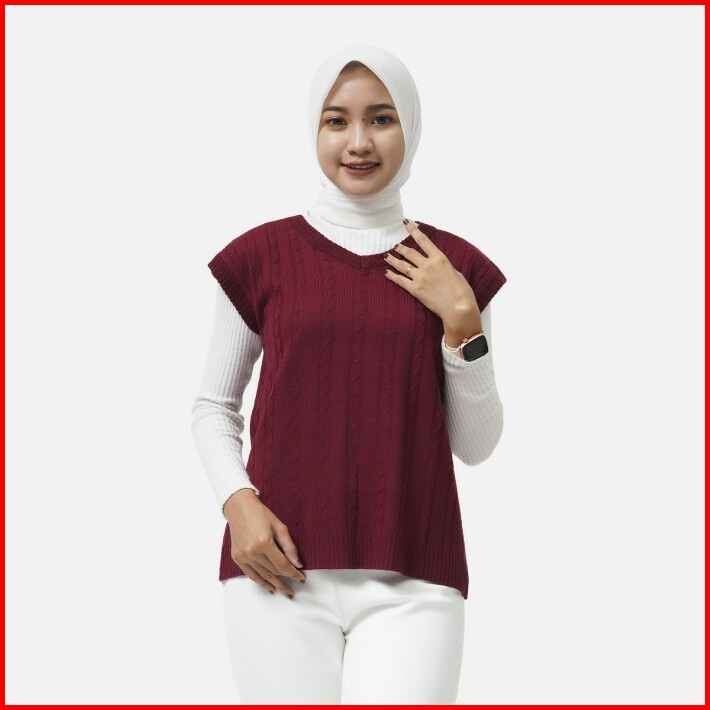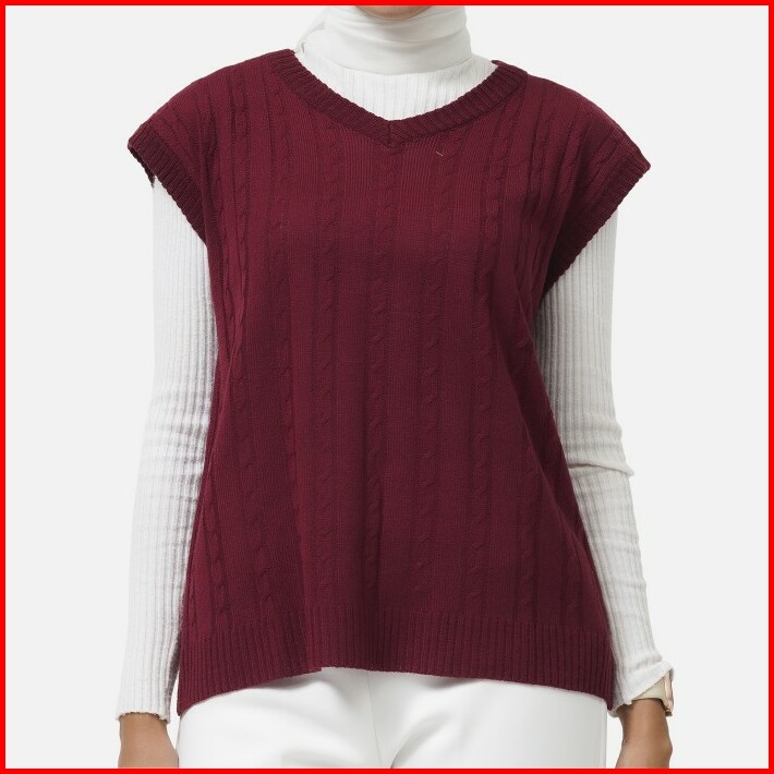 Vest Knitwear Rajut Outerwear Wanita Merah Maroon Friday Killer Girl Dealova Maroon