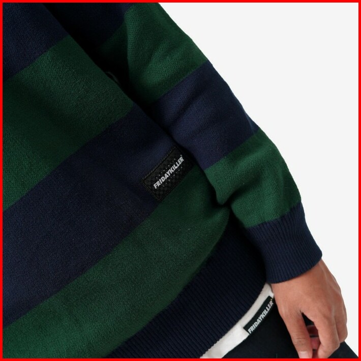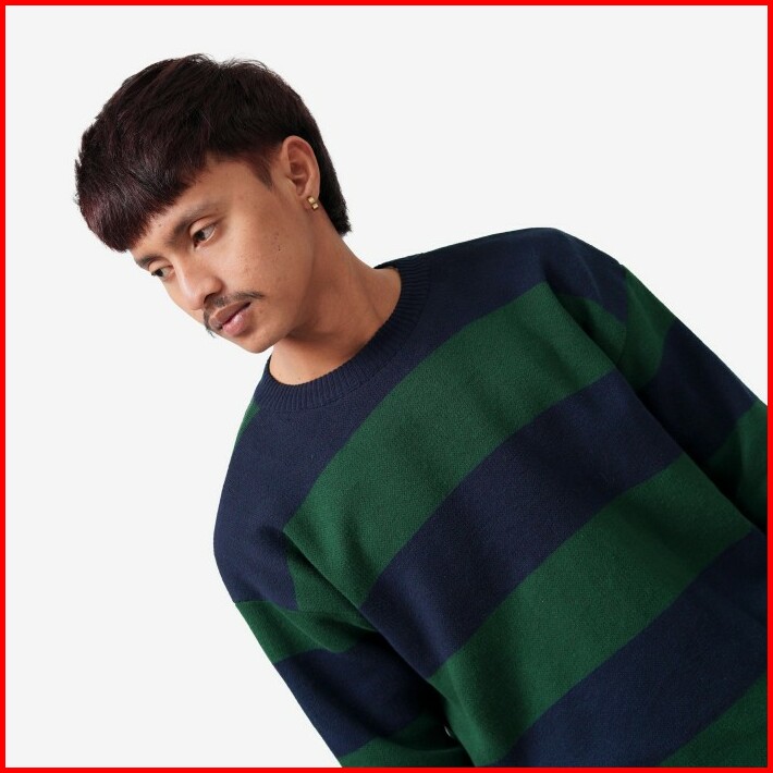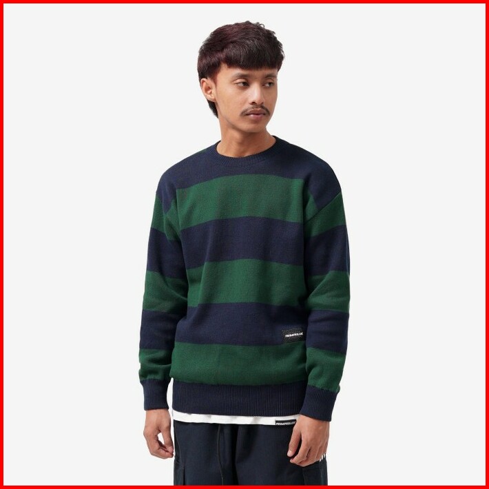 Sweater Knitwear Rajut Pria Katun Stripe Friday Killer Valinor Navy Green