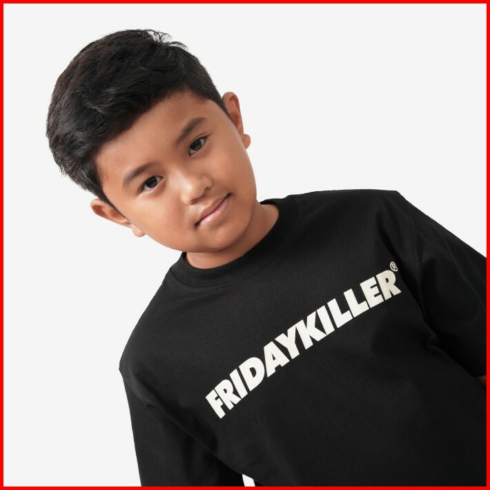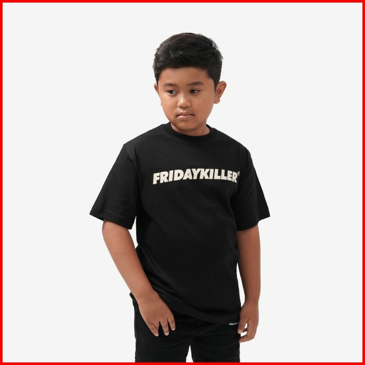 Kaos Anak Katun Lengan Pendek Polos Simple Hitam Friday Killer Core Black Kids