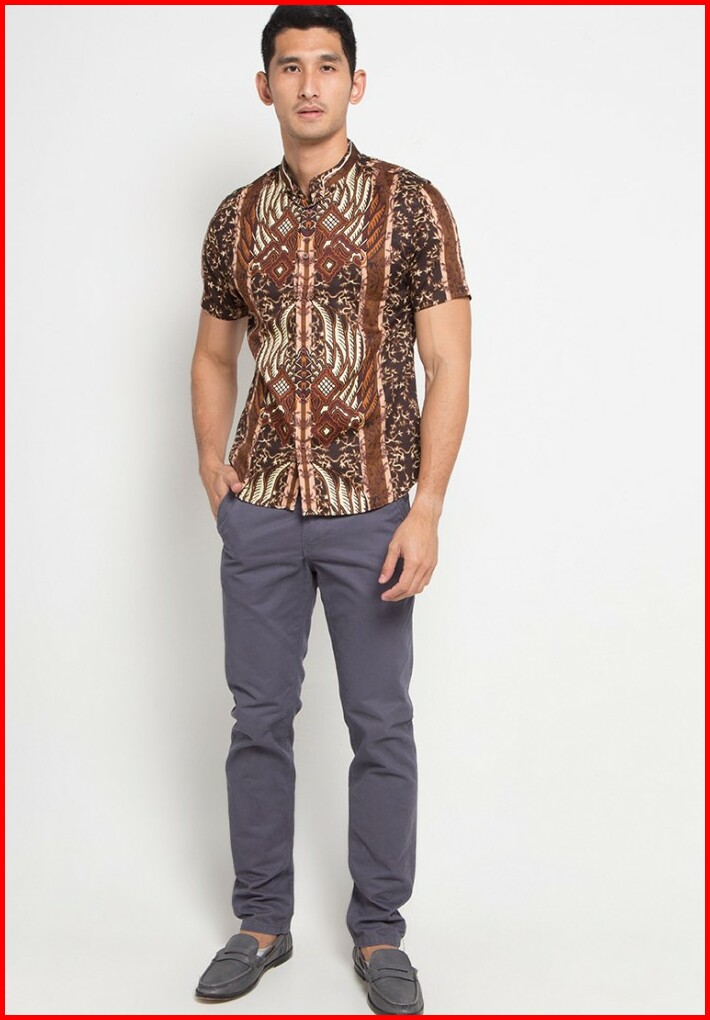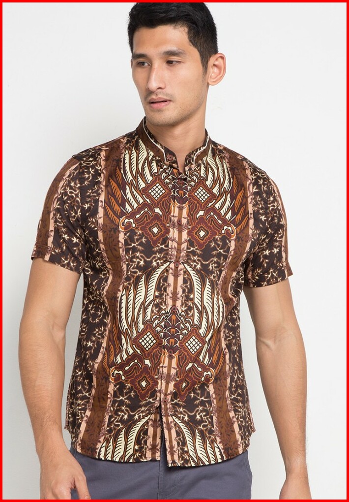 Moc Bombast-brown Kemeja Pria Lengan Pendek Slim Fit