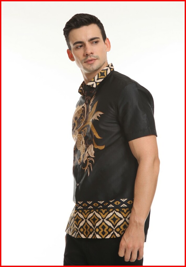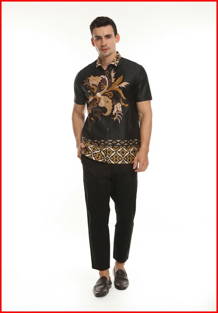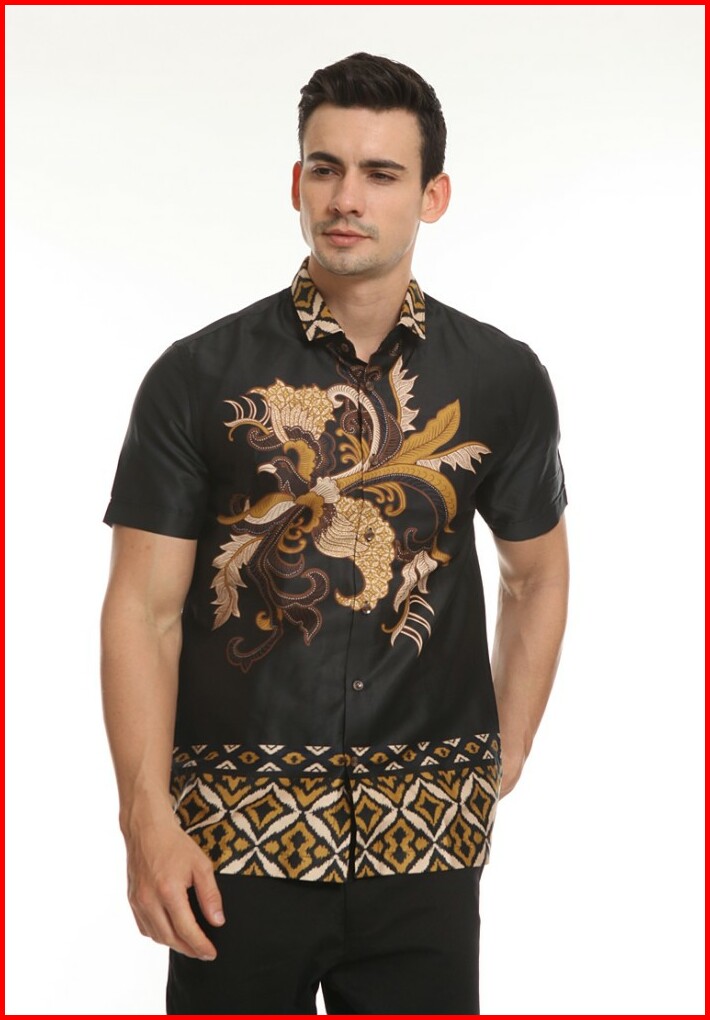 Moc Kemeja Batik Pria Lengan Pendek Modern Fit Shekti-black