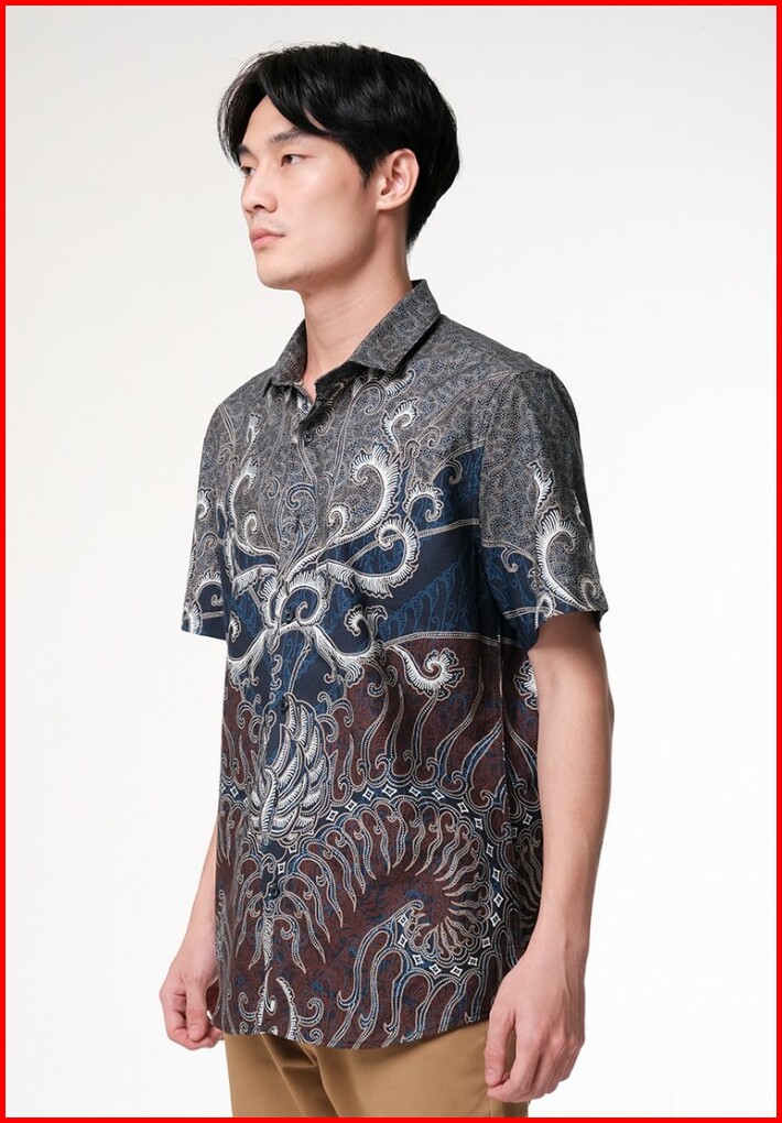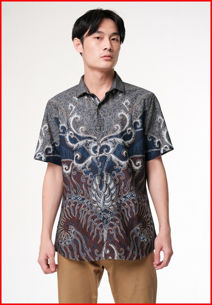 Moc Kemeja Batik Lengan Pendek Pria Wasa-navy