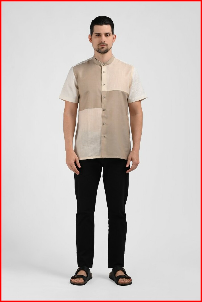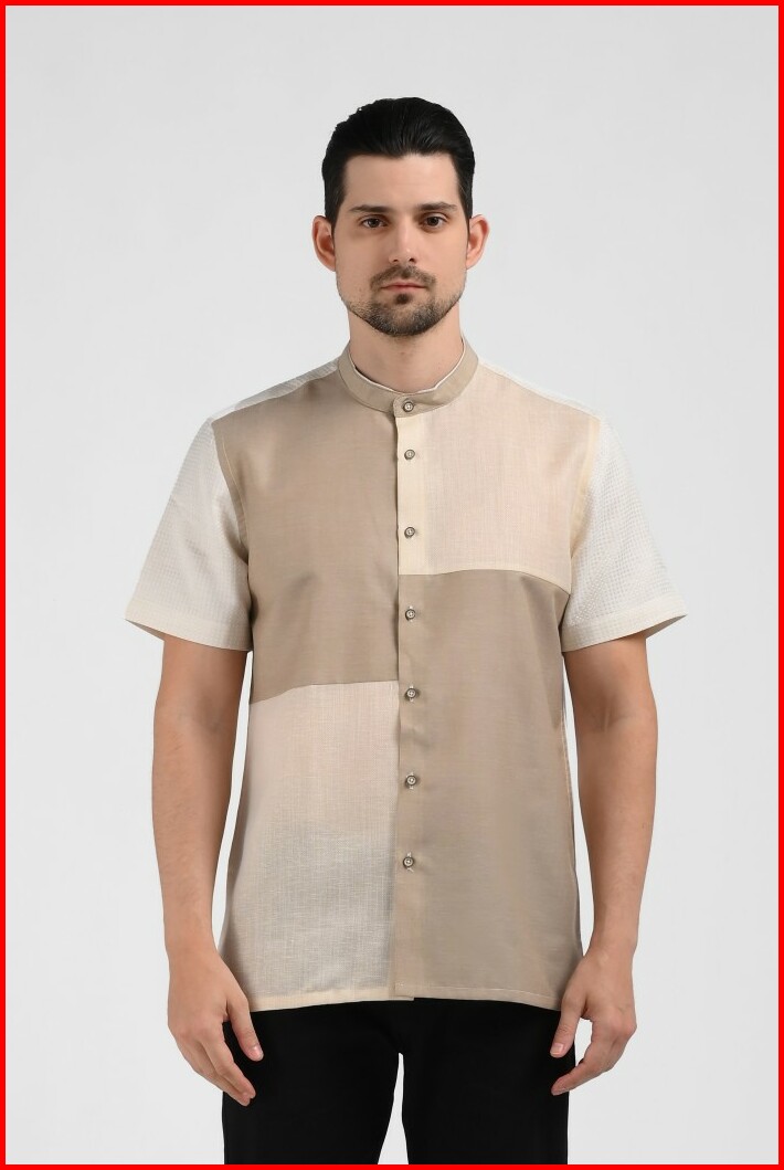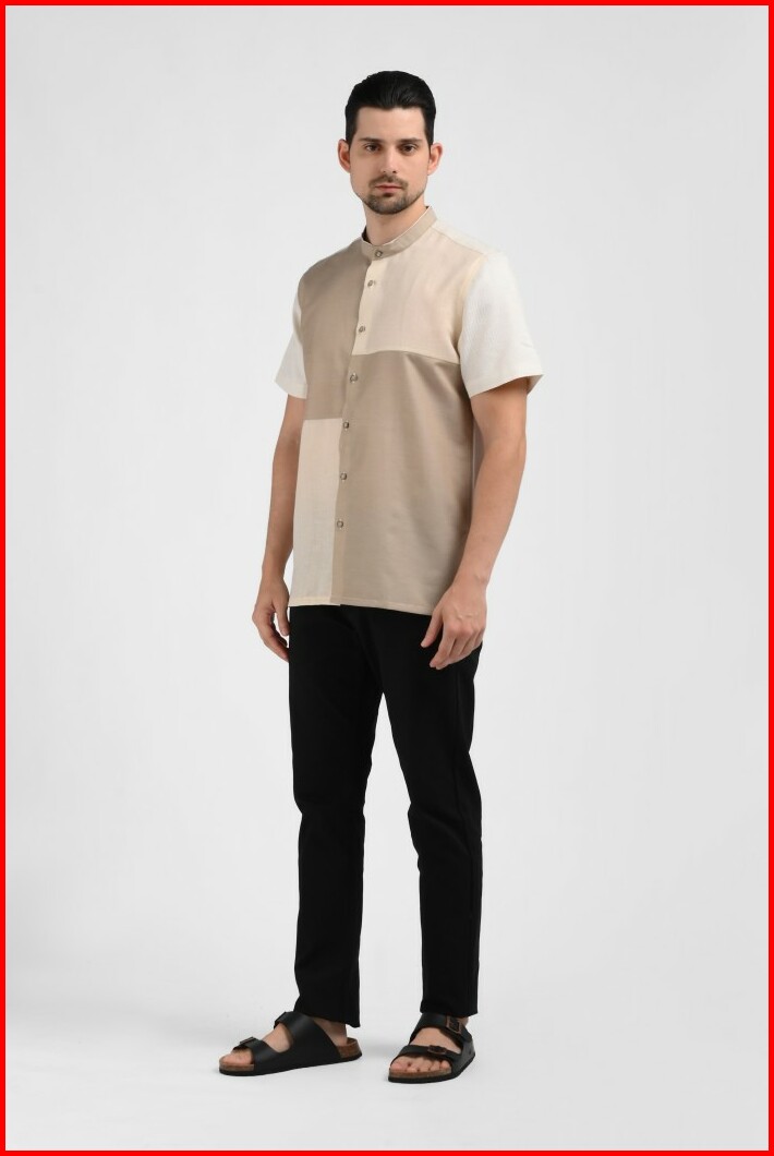Moc Kemeja Koko Lengan Pendek Pria Davos-khaki