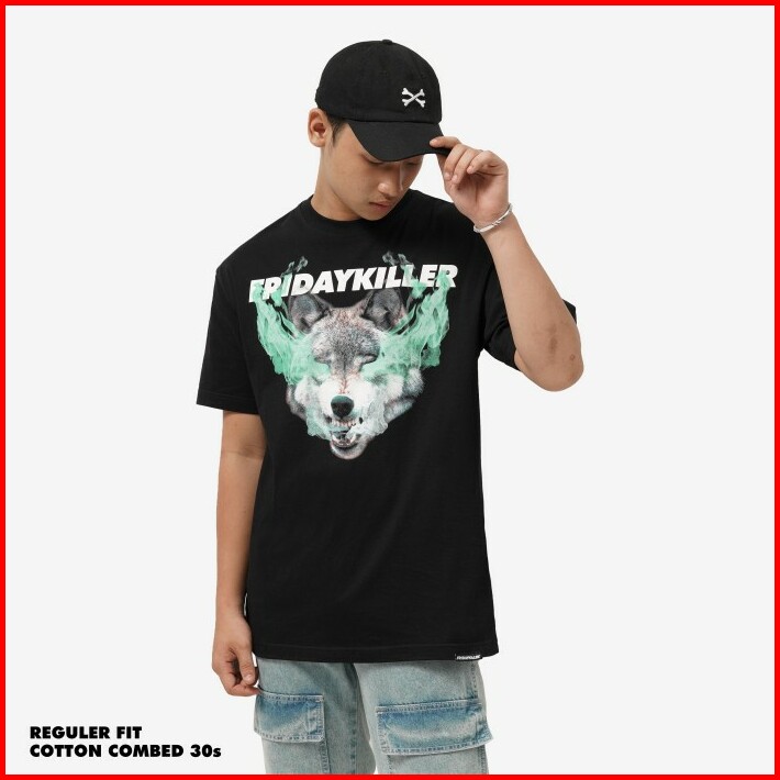 Kaos Pria Lengan Pendek Hitam Friday Killer Ice Wolf