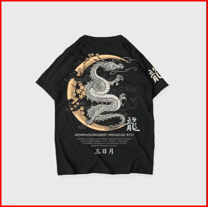 Kaos Pria Lengan Pendek Hitam Memphis Origins Mikaduki Ryu