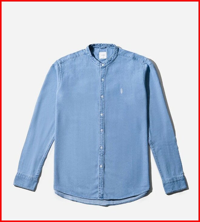 Kemeja Pria Lengan Panjang Denim Polos Biru Warning Cloth Halfdan