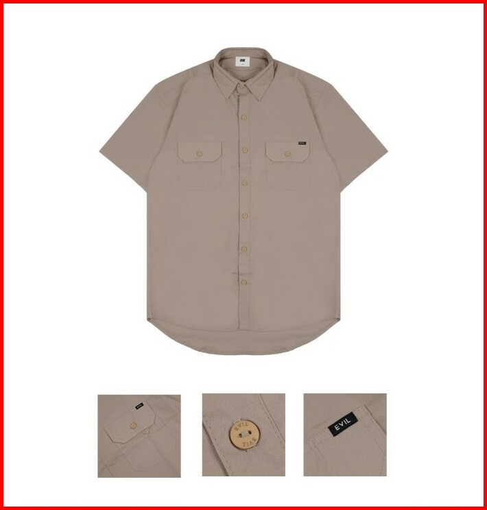 Kemeja Lengan Pendek Polos Pria Khaki Evil Army Mesovar A25 Khaki