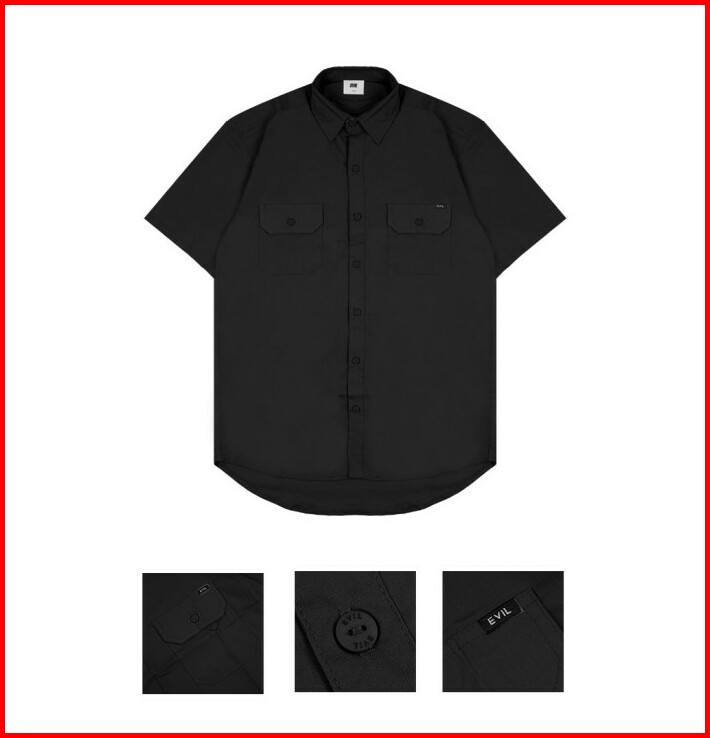 Kemeja Lengan Pendek Polos Pria Hitam Evil Army Mesovar A25 Black