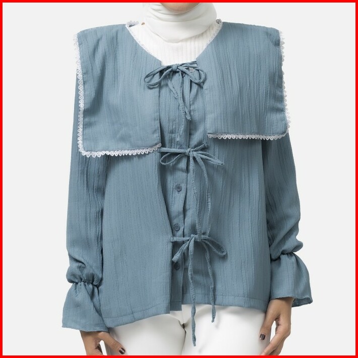 Kemeja Wanita Lengan Panjang Simple Polos Biru Friday Killer Girl Felicity Blue