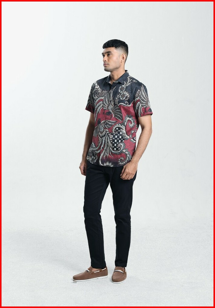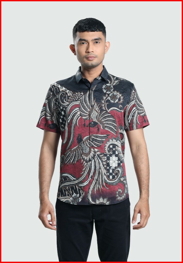 Moc Kemeja Batik Lengan Pendek Pria Hara-maroon