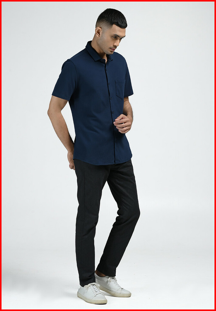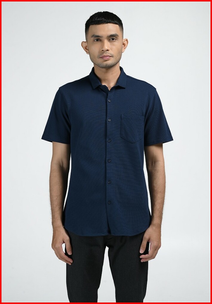 Moc Kemeja Lengan Pendek Pria Baslow-navy