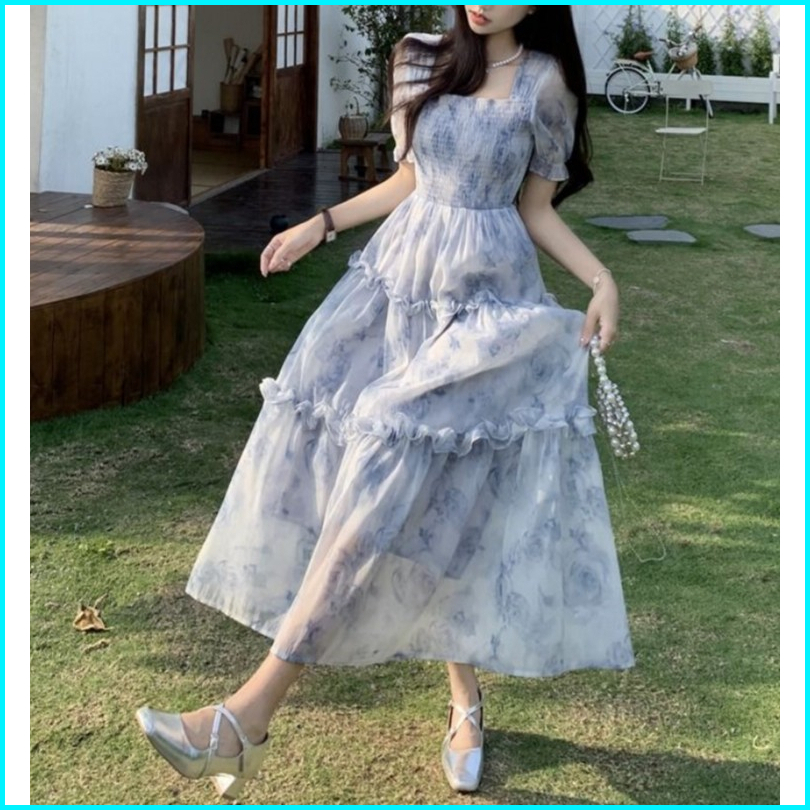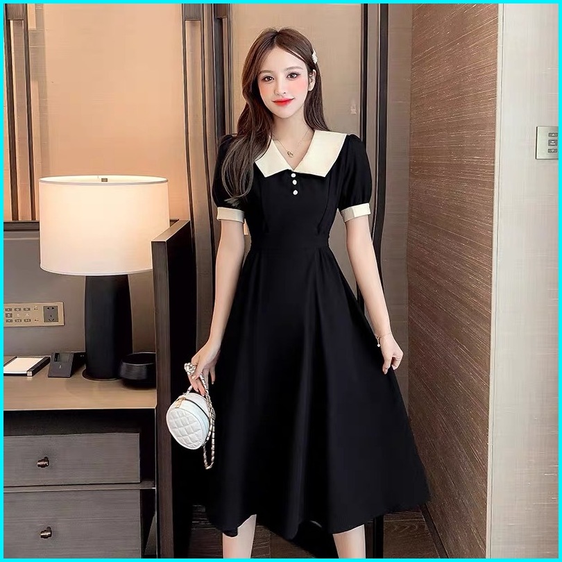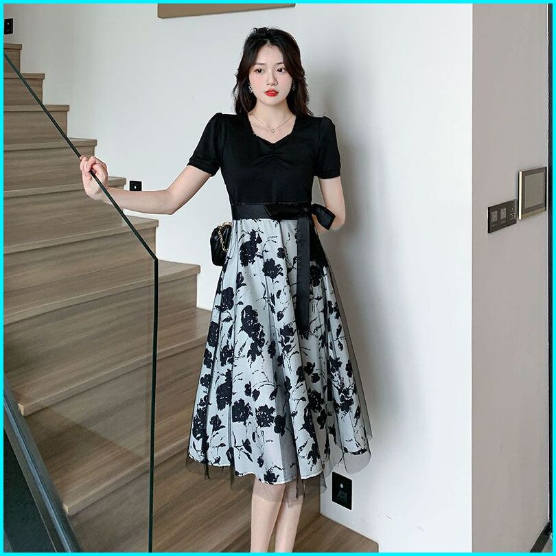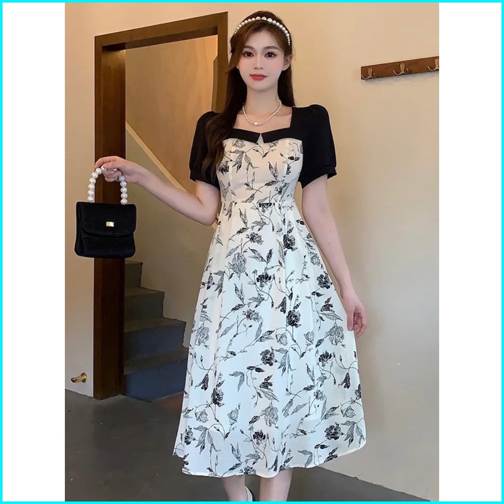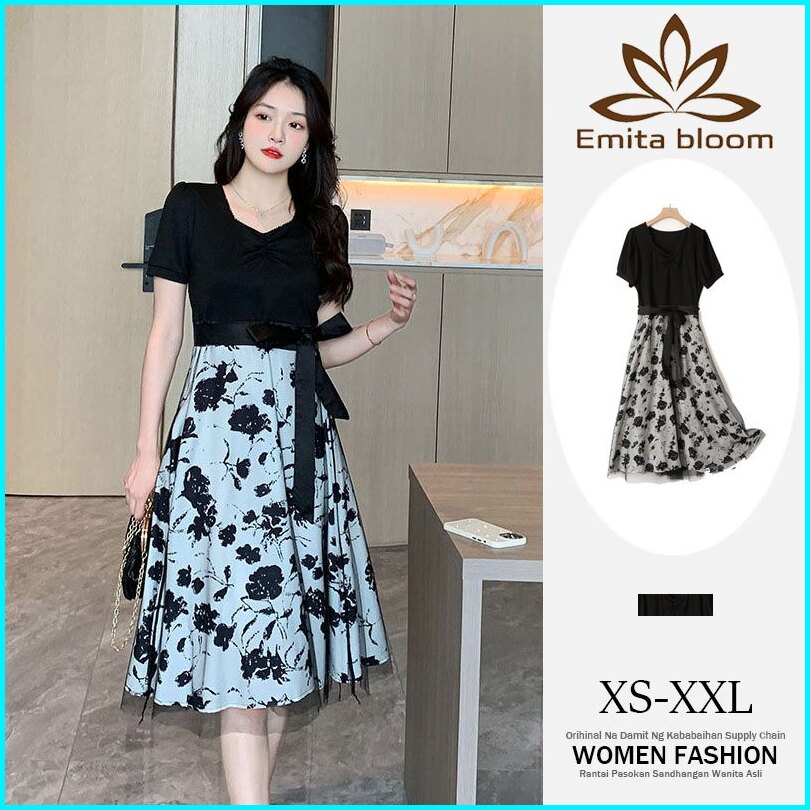 Emita Bloom Baju Pantai Wanita Floral Dress Hitam Panjang Party Elegan Midi Dress Jumbo Korean Style Aesthetic Bigsize D