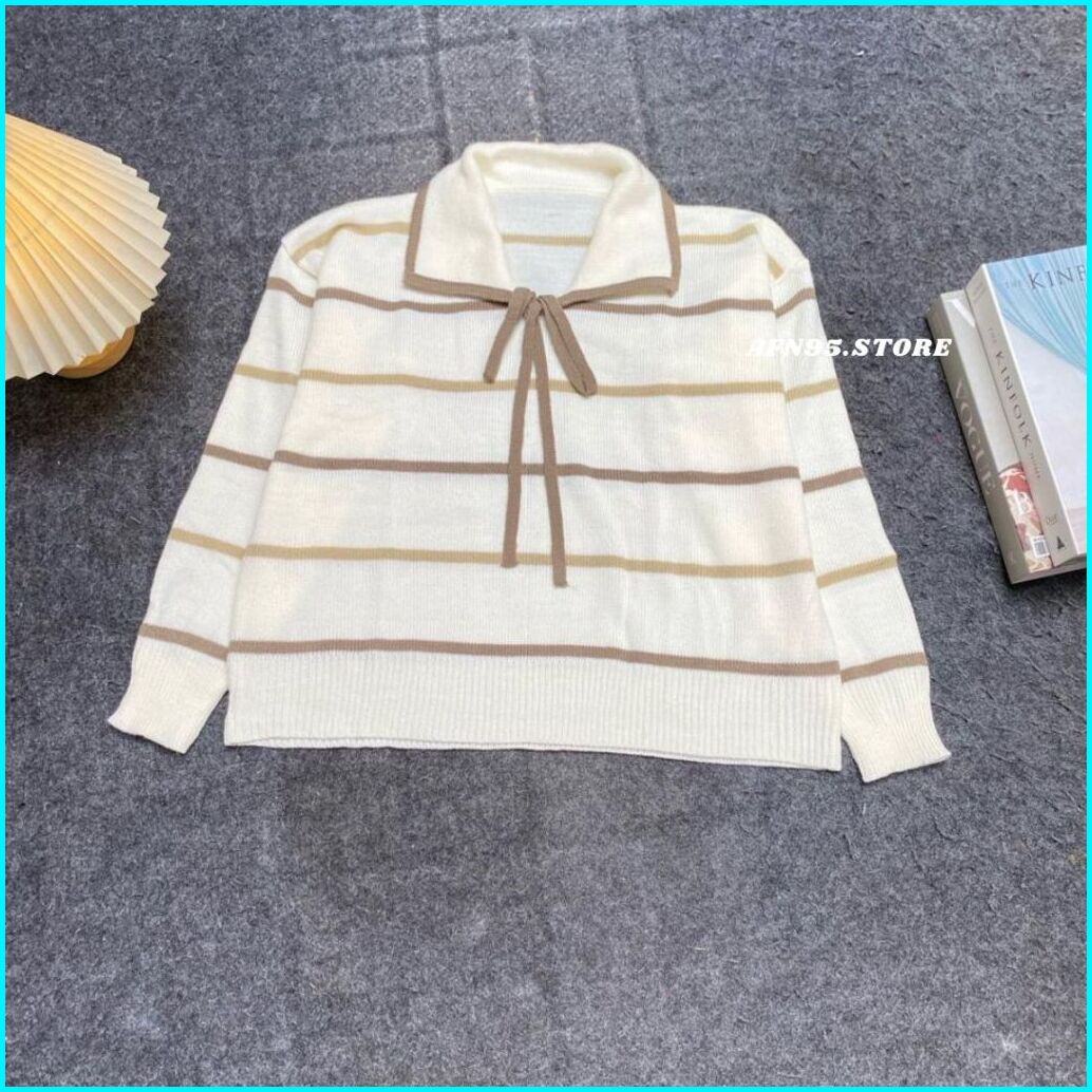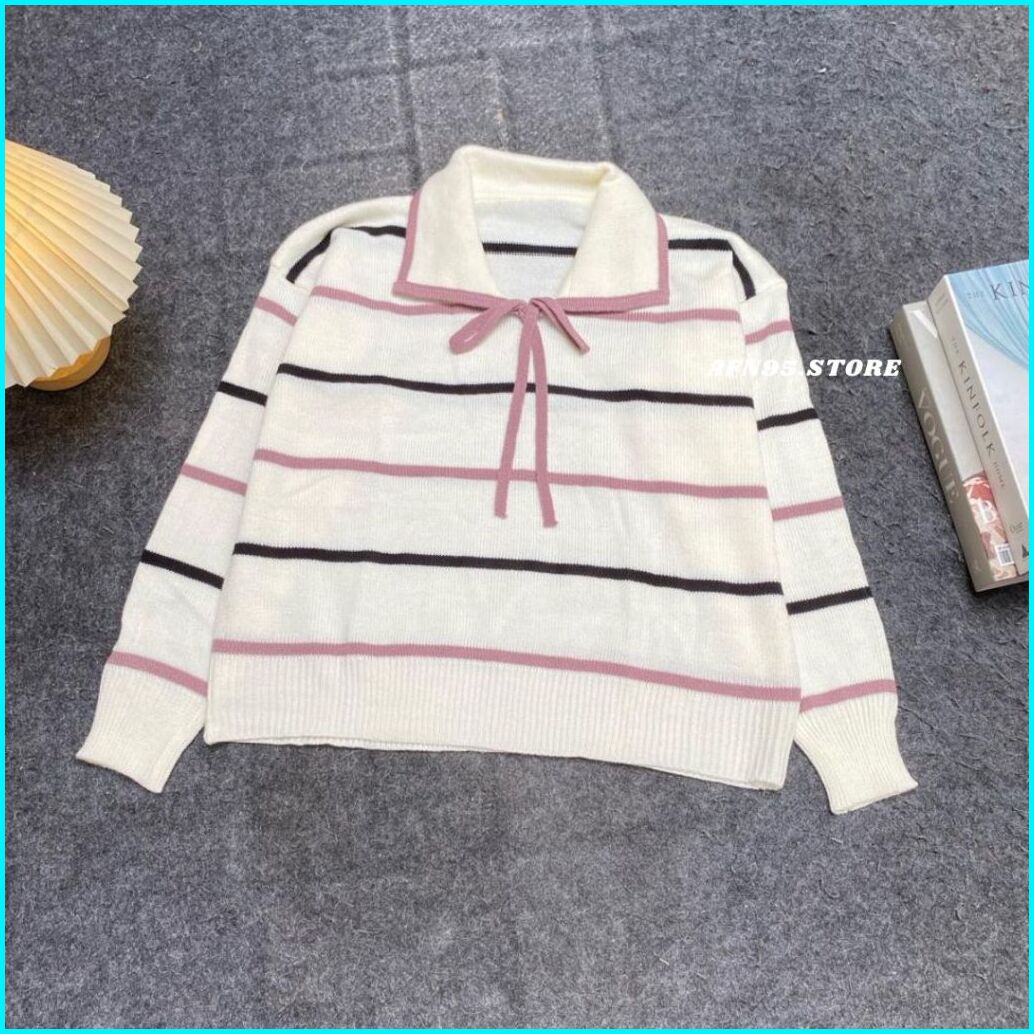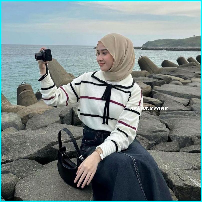 Sena Atasan Wanita Rajut Motif Garis Kerah Premium