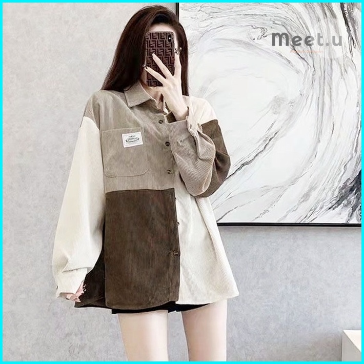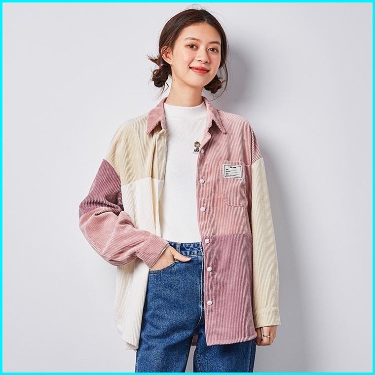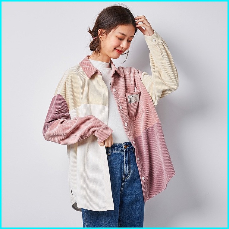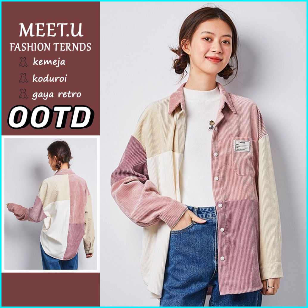 Meet.u Kemeja Korduroi Retro Wanita Yang Serasi Dengan Warna Pink Baju Atas Lengan Panjang Kasual