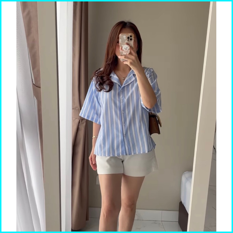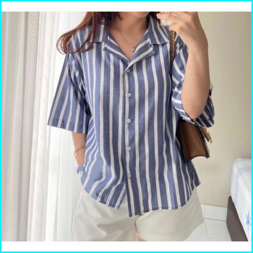 Atasan Casual Wanita Viona Stripe Shirt Vneck Korean Shirt