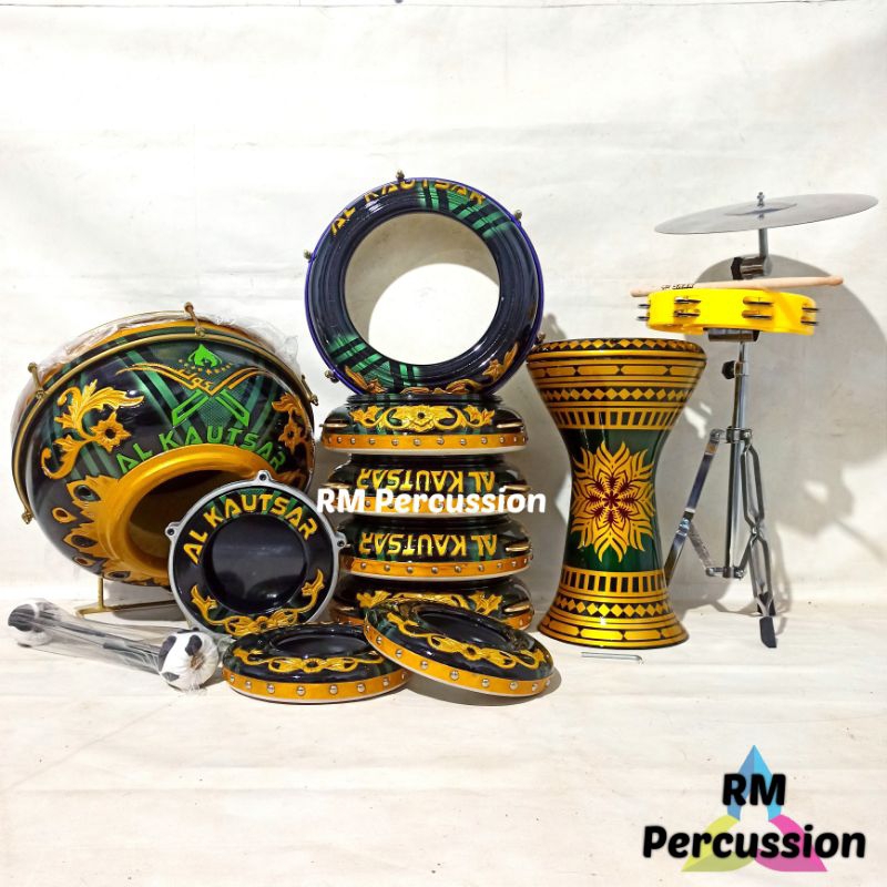 1 Set Rebana Hadroh Ukir Jepara + Bas Banjari + Simbal