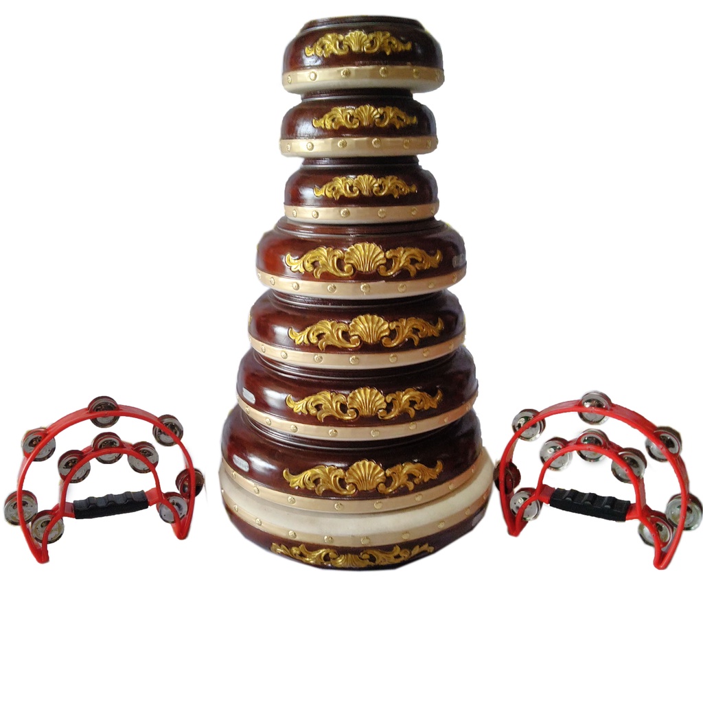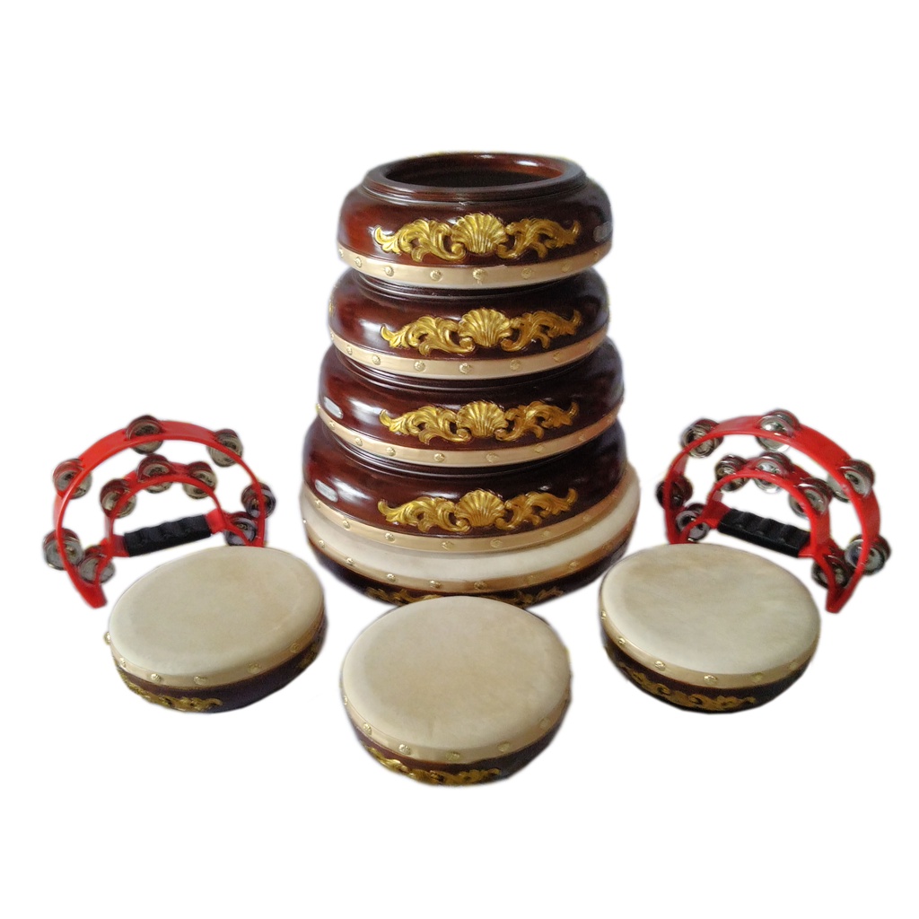 rebana kasidah 1 set lengkap polos & ukir jepara - professional murah isi 10 & isi 11