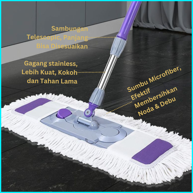 Alat Sapu Pel Lobi Pelan Debu Serap Air Lobby Duster Flat Mop Berputar 360 Derajat