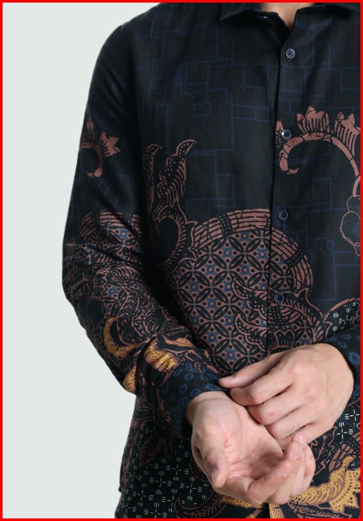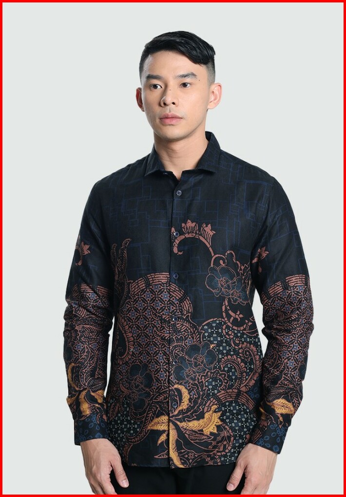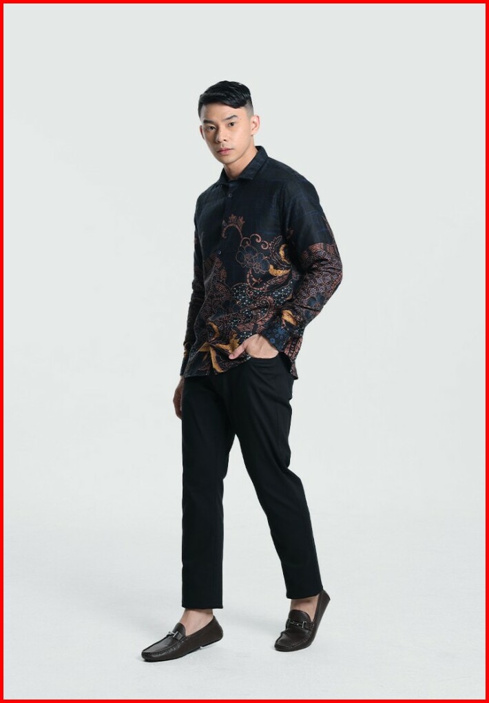 Moc Kemeja Batik Lengan Panjang Pria Atreya-navy