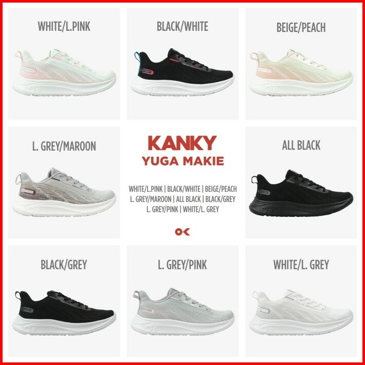WHITE/L.PINK, ALL BLACK, BLACK/WHITE, BLACK/GREY, BEIGE/PEACH, L. GREY/PINK, L. GREY/MAROON, WHITE/L. GREY