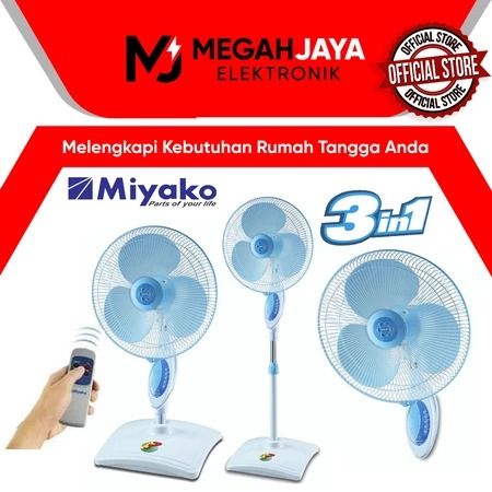 Kipas Angin Duduk Miyako 3 In 1 Stand Fan, Desk Fan, Wall Fan Remote 16 Inch TJR101 Original Official Store