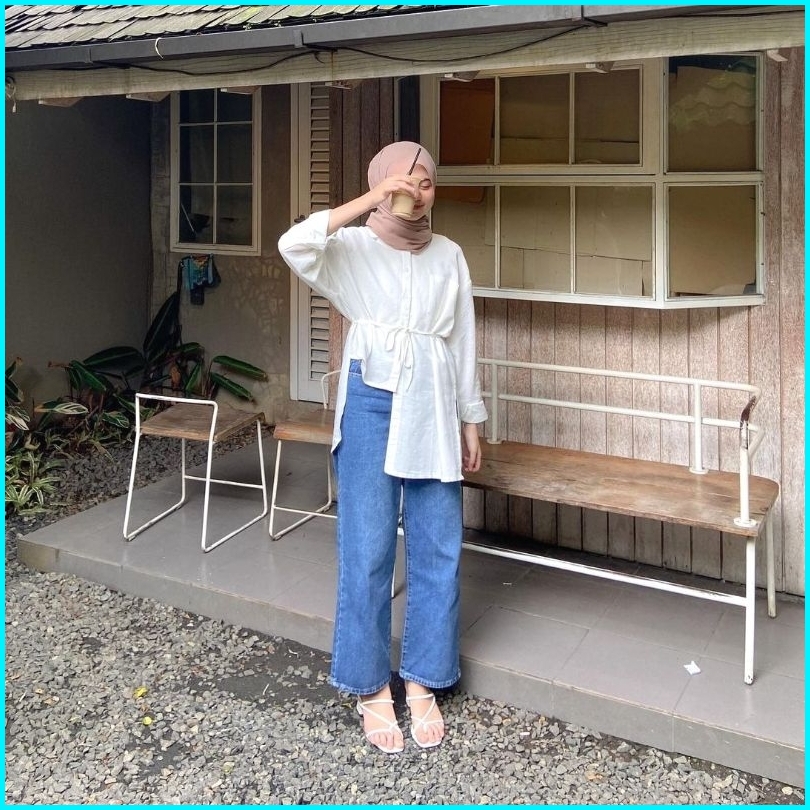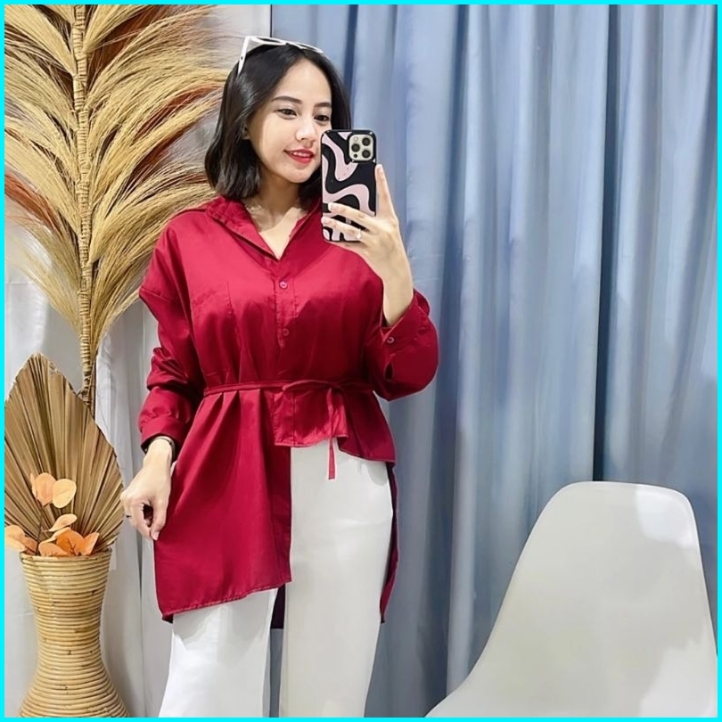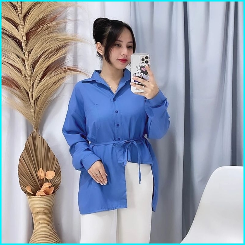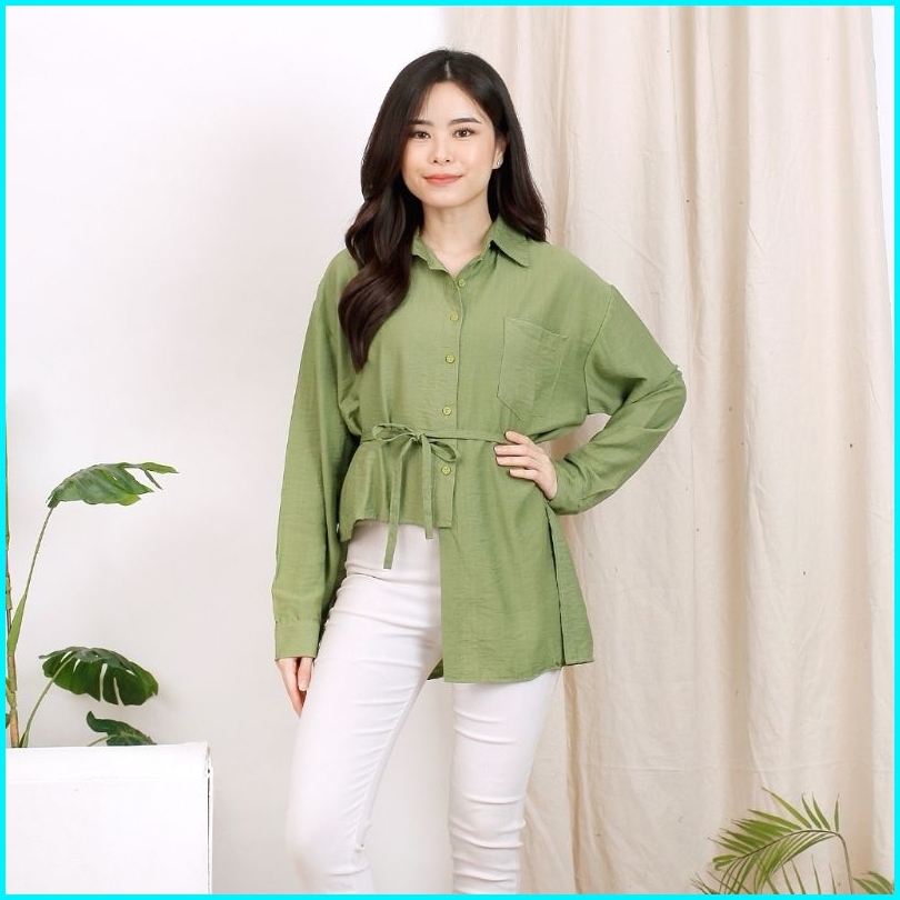Blouse Wanita Tali - Tami Shirt - Kemeja Oversize Linen - Atasan Wanita Lengan Panjang Full Kancing